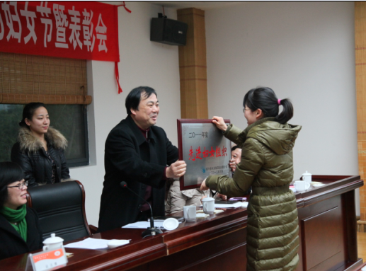 圖為集團(tuán)高副書記為獲得2011年度婦聯(lián)先進(jìn)集體頒獎