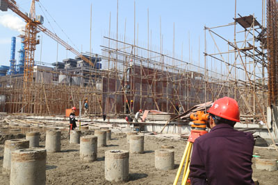 2月26日,江濱20萬噸/日集中預(yù)處理二期工程建筑工地上呈現(xiàn)出一片繁忙的景象,100多名施工人員忙碌在工作崗位上。